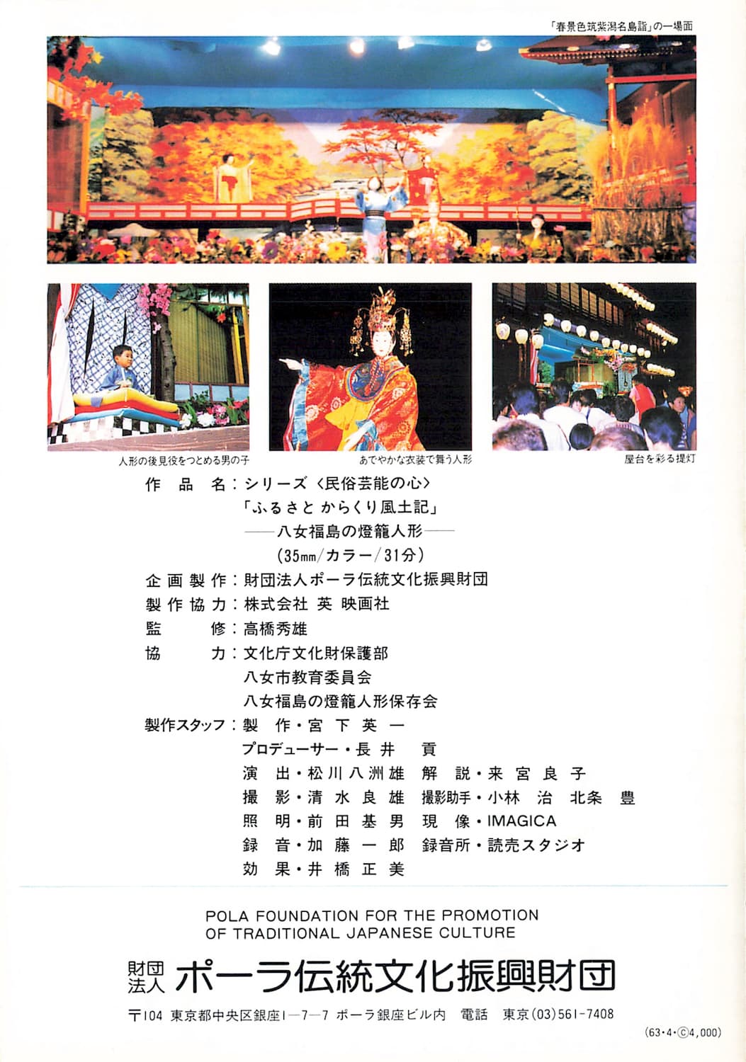 協力:文化庁文化保護部、八女市教育委員会、八女福島の燈籠人形保存会
