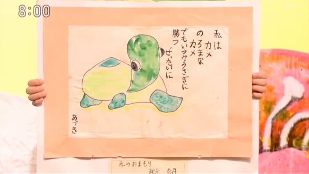 あづきちゃまが好きな昔話は「うさぎとかめ」。どうしてこのお話が好きかというと、新体操を習っていた頃にうまくいかない時に落ち込んでいたら先生が「あなたは『うさぎとかめ』のカメのように一歩ずつコツコツがんばりなさい」と言ってくれたから。