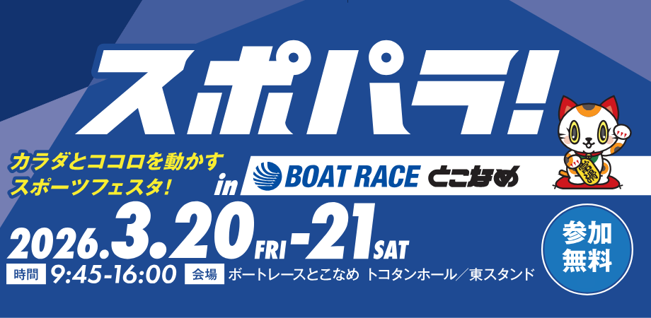 | イベント名 | スポパラ!in BOAT RACE とこなめ 〜カラダとココロを動かすスポーツフェスタ〜 |