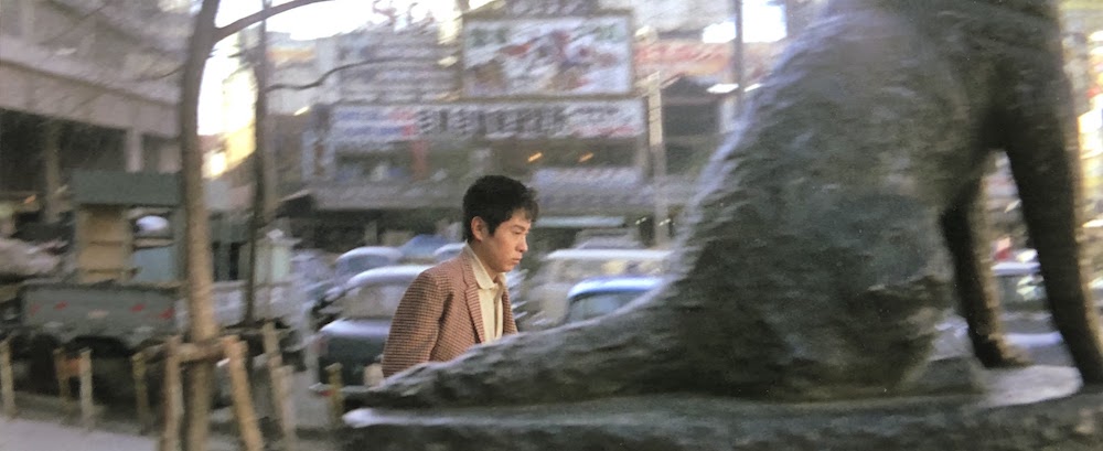 ハチ公像前。真美(吉永小百合)と東横線で別れた次郎(浜田光夫)が渋谷の街を歩く。ハチ公像前。