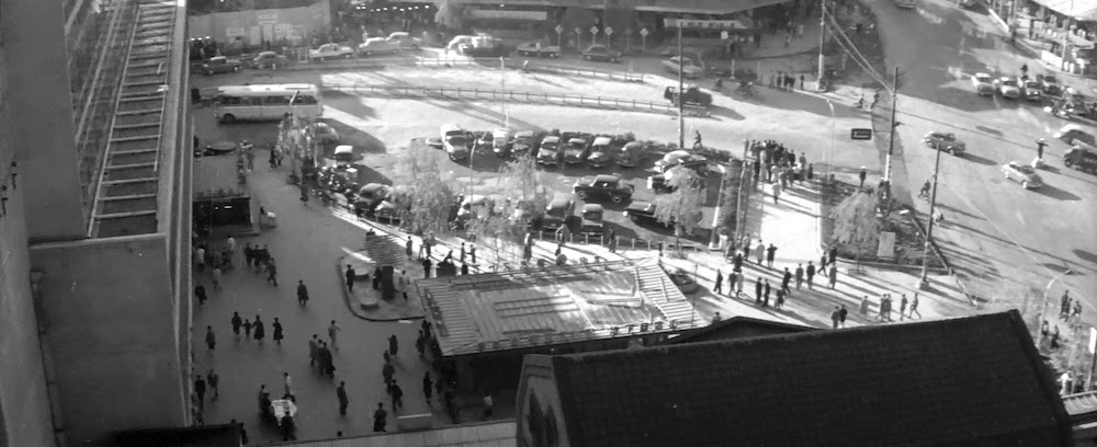 青年(舟木一夫)と洋子(内藤洋子)が上京し降り立つのが渋谷。ハチ公前広場。右手にハチ公像がある。