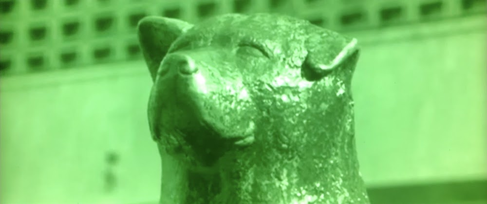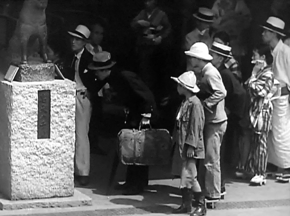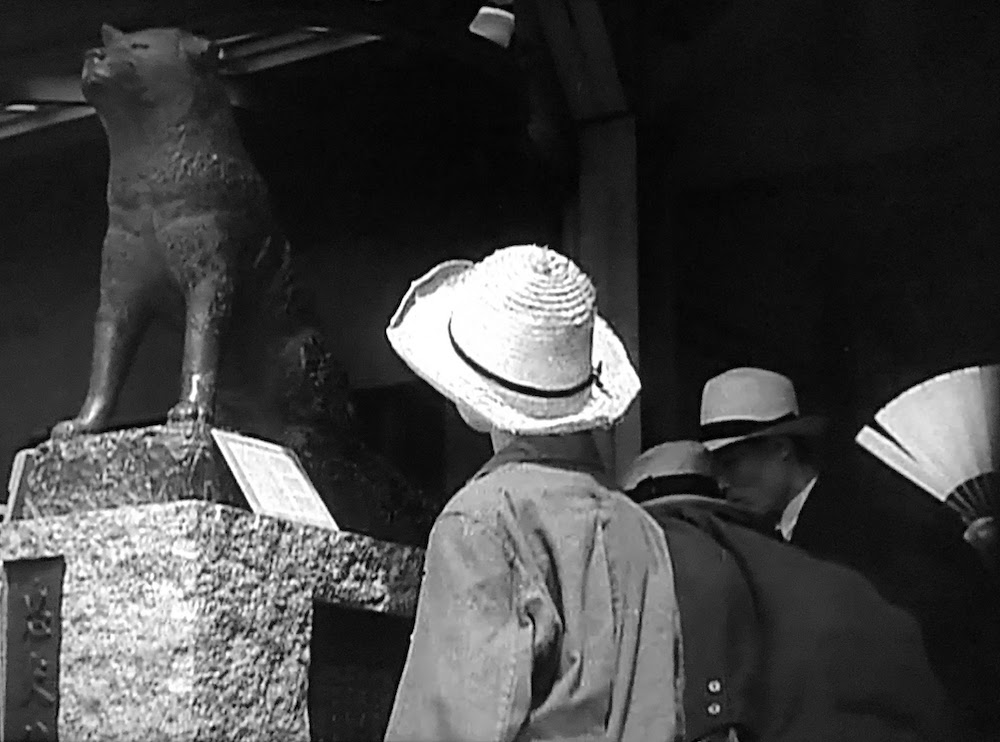 陽洋先生(丸山定夫)は於菟(伊東薫)にハチ公像を見るよう勧めるが、その時於菟は本物のハチ公を撫でていた。