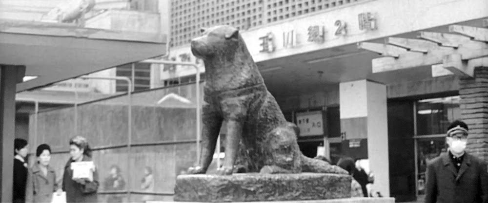 中央にハチ公像、背後に「東急百貨店東横店」。ハチ公のナレーション(声:見明凡太朗)でストーリーが始まる。