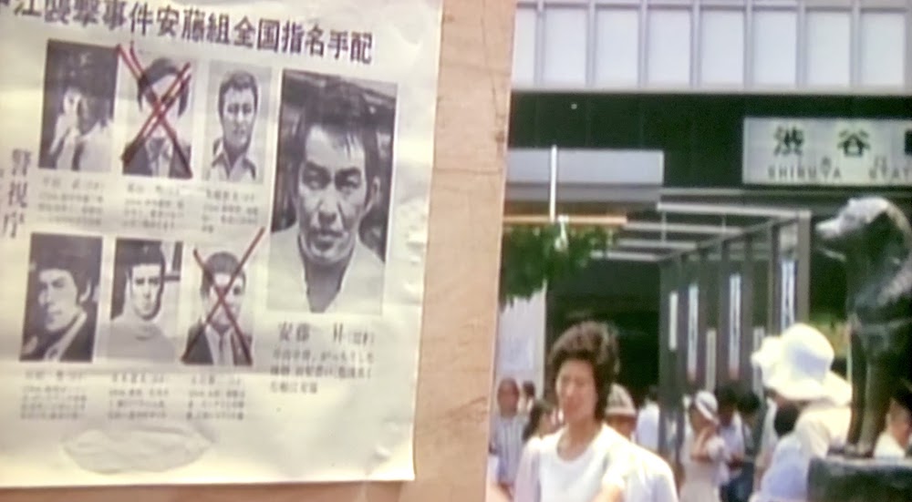 中江昭麿襲撃事件で安藤興業のメンバーが全国指名手配される。渋谷駅前に貼られたポスター。場所はハチ公口、右手に忠犬ハチ公像。