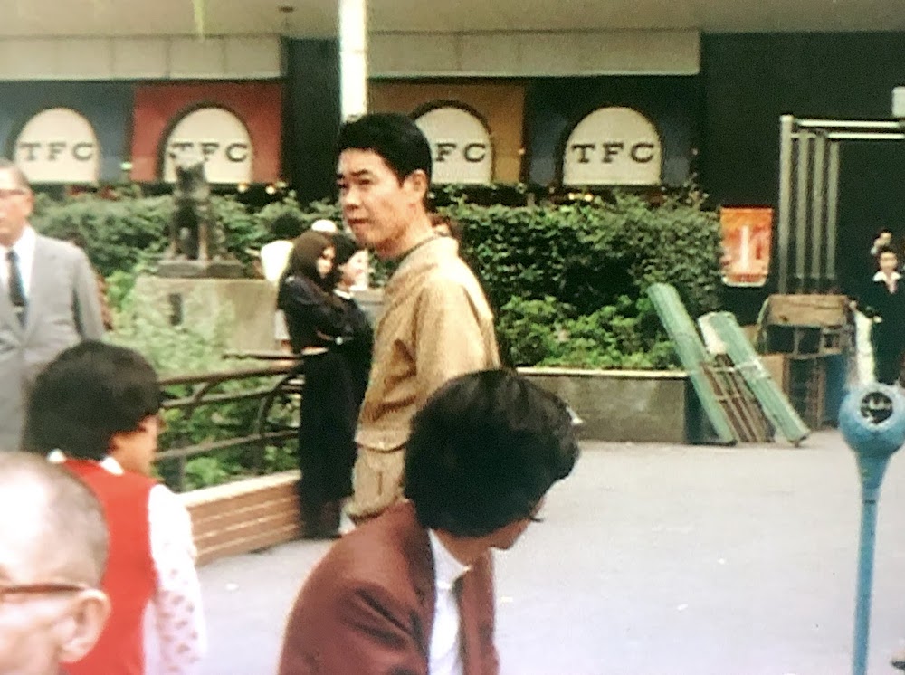 背景の「TFC」というロゴが並んでいる建物は「東急百貨店東横店」。
