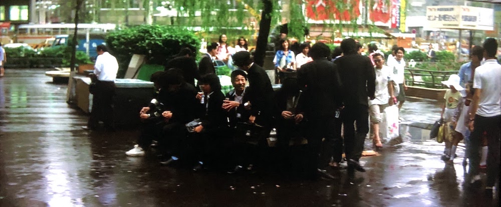 渋谷駅周辺のカットが挿入される。ハチ公前広場で演説する右翼。背後の建物はJRや銀座線から京王井の頭線への連絡橋。