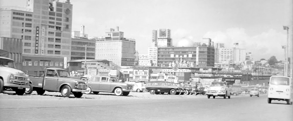遠方に「東急文化会館」および屋上の「五島プラネタリウム」(現「渋谷ヒカリエ」渋谷2-21-12)が見える。