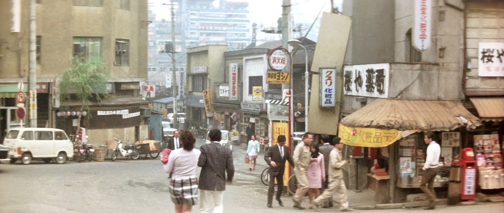 短い道は桜丘町3、桜丘町4の間の道、「桜ヶ丘荘」という設定の建物は桜丘町8の個人宅。「暗黒の旅券」(1959)で同じ場所が映っており、看板に住所が記してあったことから判明。再開発に伴い現在この道は廃道となり、道の左右は「渋谷サクラステージ」セントラルビルの一部、「桜ヶ丘荘」は「渋谷サクラステージ」SAKURAタワーの一部となっている。