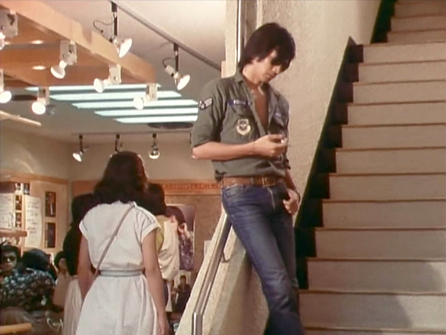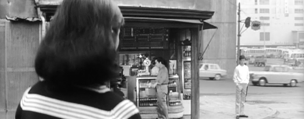 椎ノ木武志(太田博之)が叔父の中瀬安芸男(内藤武敏)と夕食のすき焼きの買い出しにいった先でこちらを見つめている同じクラスの河合奈津子(太田雅子=現・梶芽衣子)に気づくシーン。