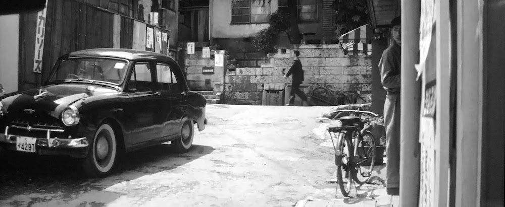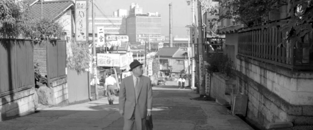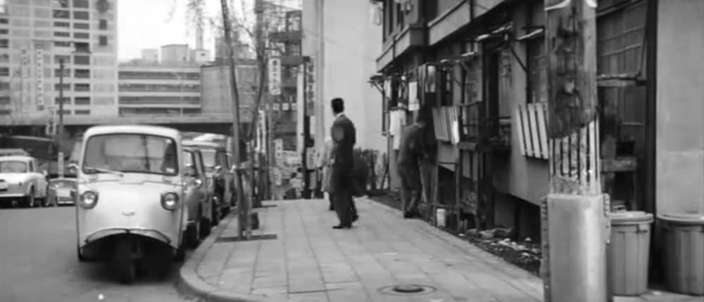 オープニング、東京の各所を空撮した後カメラは桜丘町全景を俯瞰するショットから植松唯人(植木等)が住むアパートへズームインする。