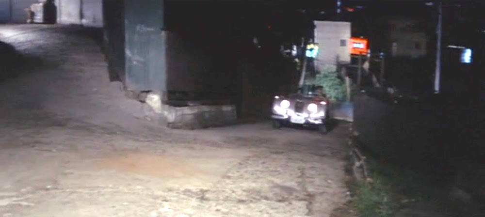 かおりと光郎を乗せたタクシーが走っているのは桜丘町15と桜ヶ丘8の間に現存するヘアピンカーブの坂。遠方に「東急百貨店東横店」が見える。正面の黒い板塀の民家は現「ガーデンホテル渋谷」(桜丘町15-4)。坂の右側は再開発に伴い「渋谷サクラステージ」SAKURAテラスとなった。