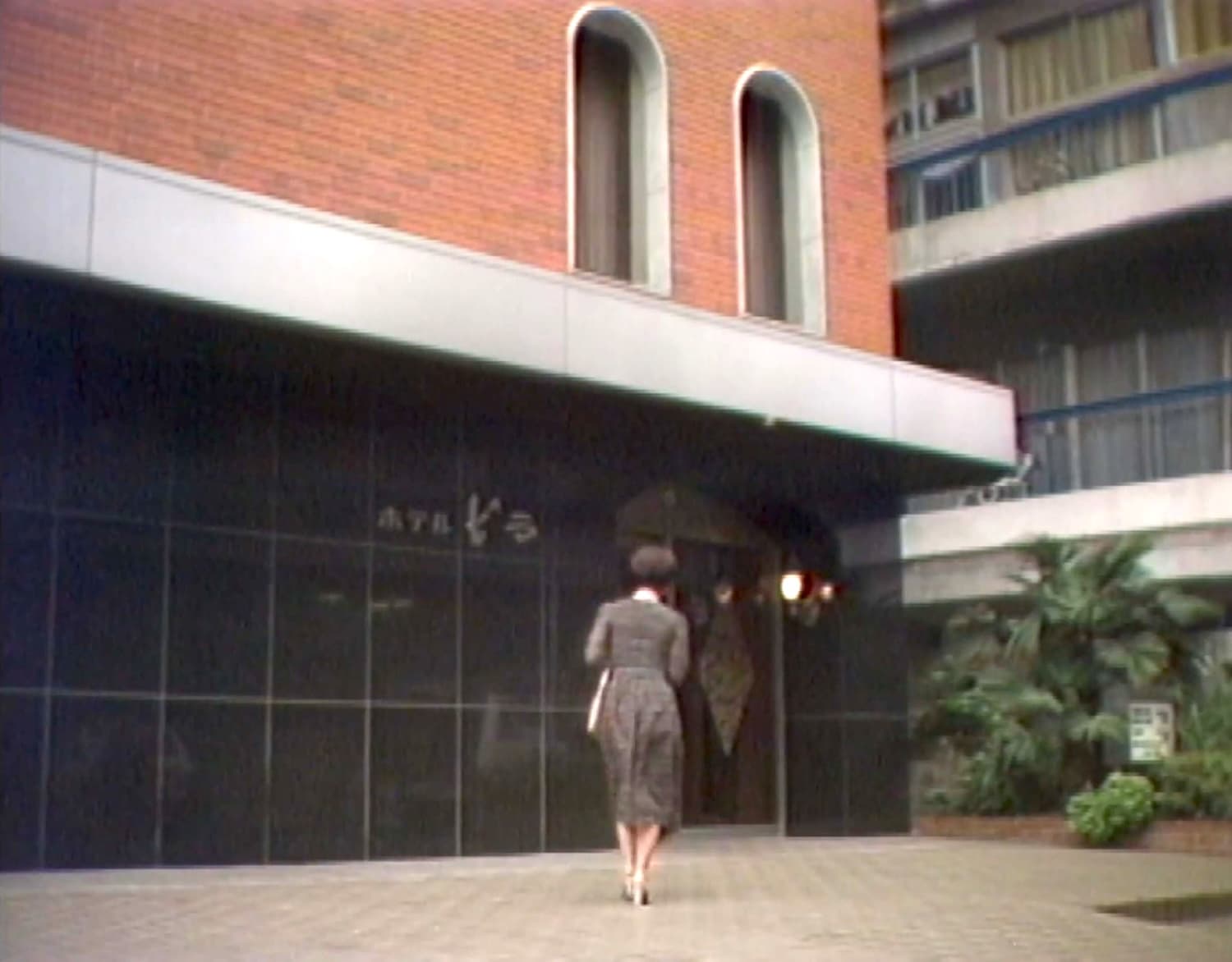 二人が入った背後のホテルは「ホテルビラ」(現・日本経済大学インキュベーション施設「ハッチェリー渋谷」桜丘町14-1)。