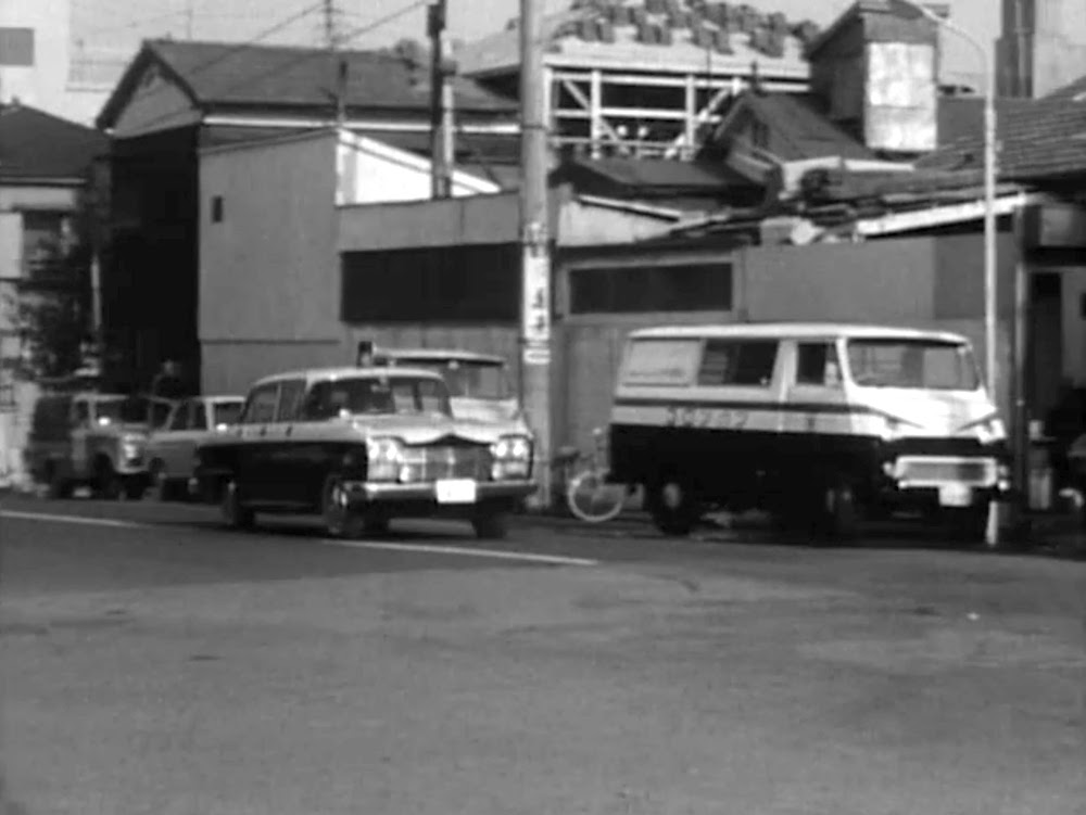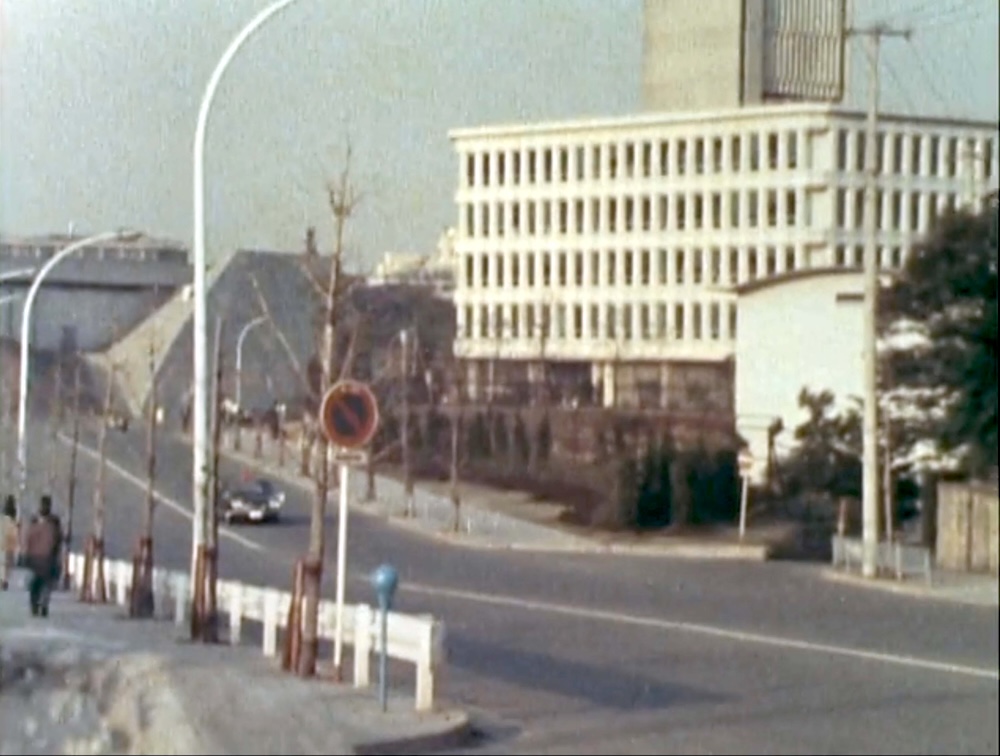 前者は「特別機動捜査隊 #1 最後の犯人を追え」(1961)で 同じ外観の建物を特定済。後者は「歌う暴れん坊」(1962)のこの付近を撮影したシーンで特定済。